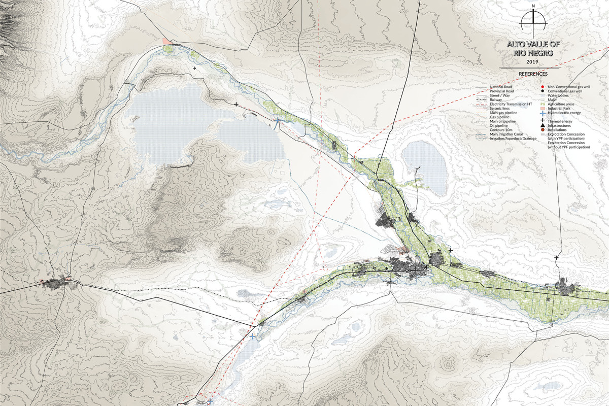 This research seeks to make visible the multiple effects of fracking in Vaca Muerta and southern Argentina by mapping territorial conflicts, socio-environmental inequities, and urban challenges arising from the extractive model. Through critical cartographies, it proposes new ways of understanding and representing these processes, with the aim of informing the development of public policies, planning strategies, and design tools geared toward achieving spatial justice.