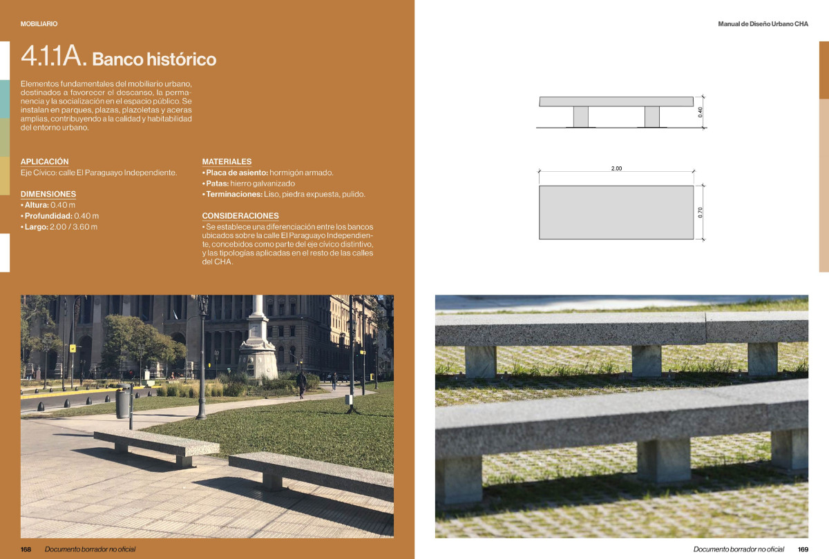 • Urban Furniture: specifies street furniture, lighting, signage, and complementary elements.