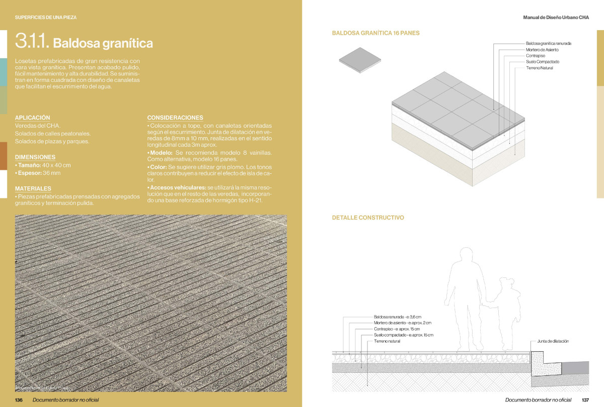 • Materiality: proposes materials for pavements, edges, and surfaces.