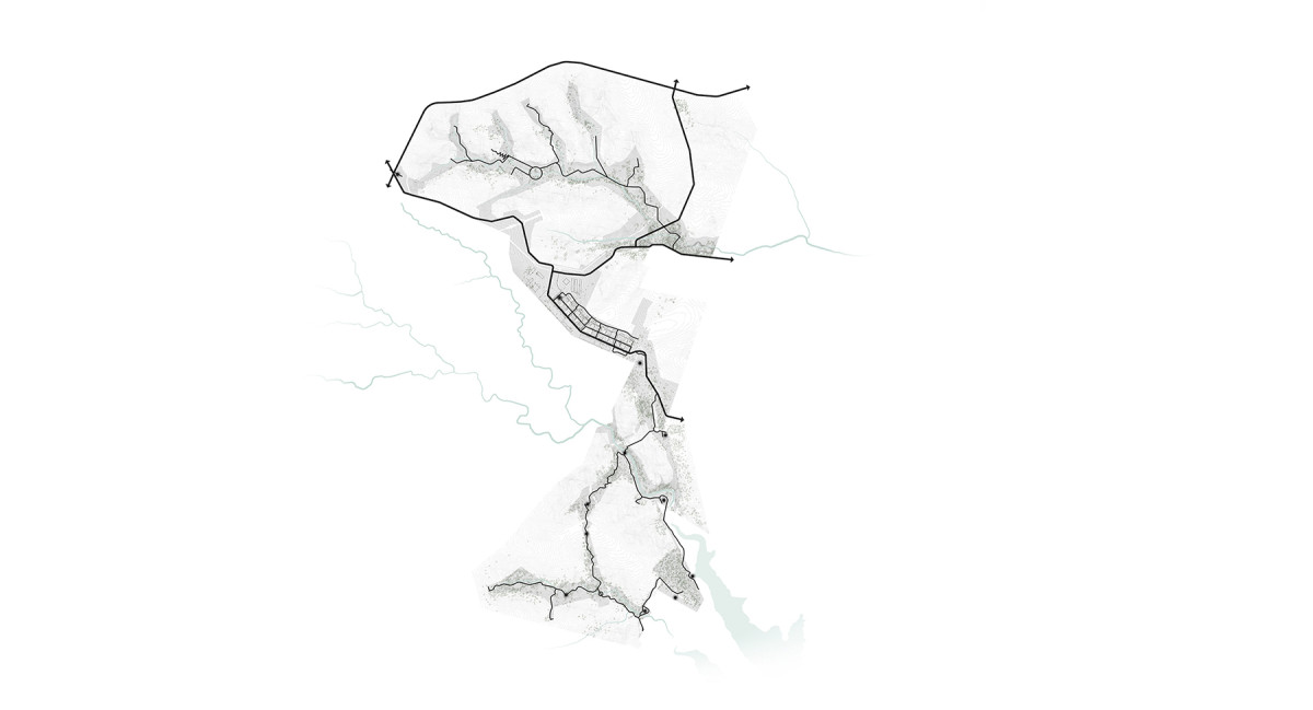 The intervention is structured as a network of trails and landscape viewpoints, approaching landscape design as a tool to restore, connect, and activate the territory. The landscape is conceived as an active element of the project, capable of articulating relationships between nature, culture, and community. A sensitive system that is revealed through experience, integrating diverse scales, uses, and ways of inhabiting the land, among others.