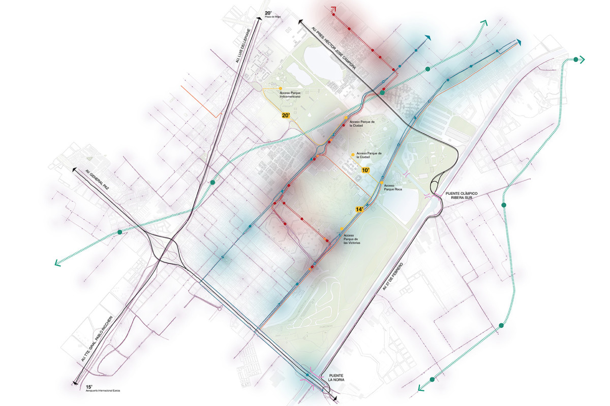 Low-density housing, informal settlements, and a collection of municipal neighborhoods coexist with industrial areas and large logistical complexes that serve heavy freight traffic. This is a historically underprioritized area in the urban agenda, strongly shaped by its origins as a flood-prone waste dumping site. Environmental remediation and improvements only began in the 1940s, with the channelling of the Cildáñez stream. Thirty years later, the creation of the Buenos Aires Metropolitan Area Ecological Belt (CEAMSE) initiated a process of transformation that continues today and was accelerated by the 2018 Youth Olympic Games.